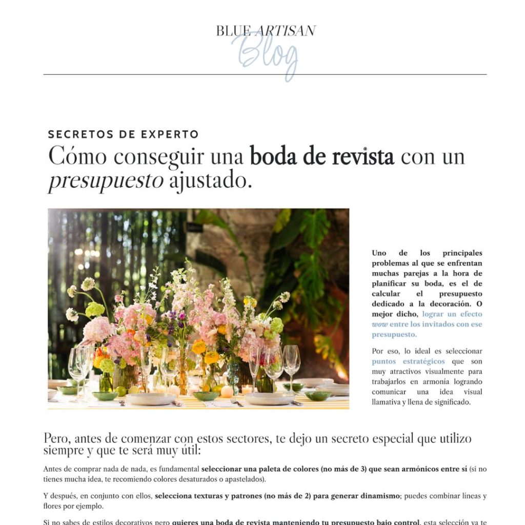 INTERIORISTA DE BODAS Y DIRECTORA DE BLUE ARTISAN